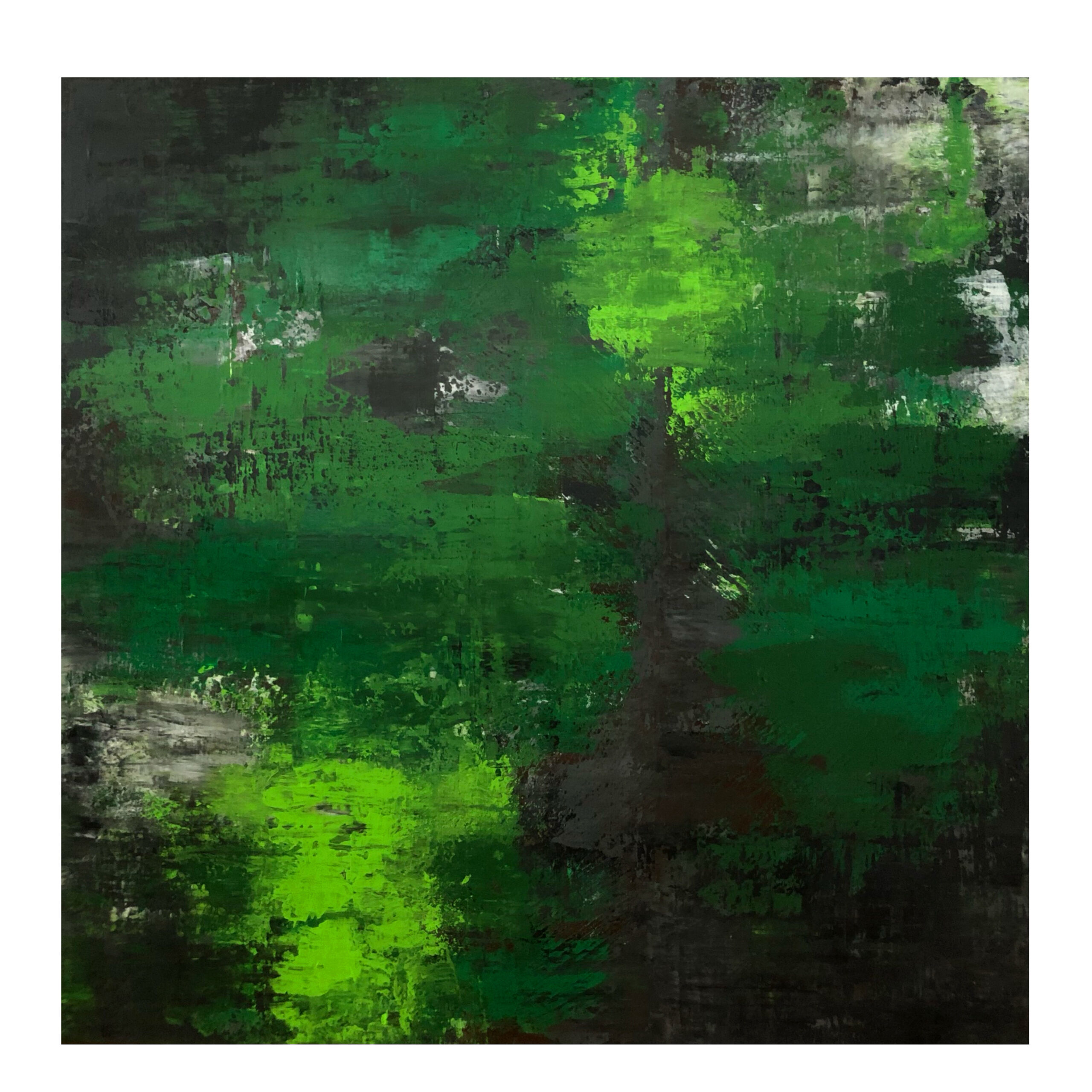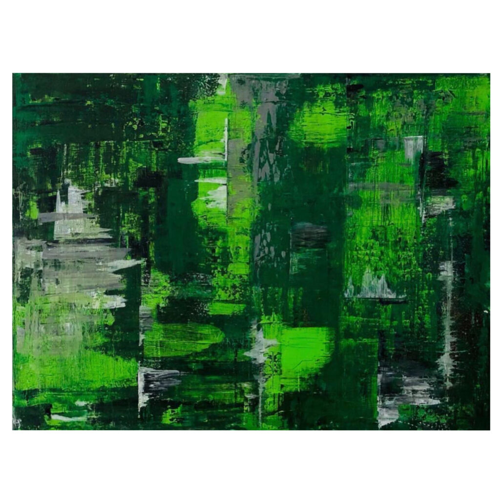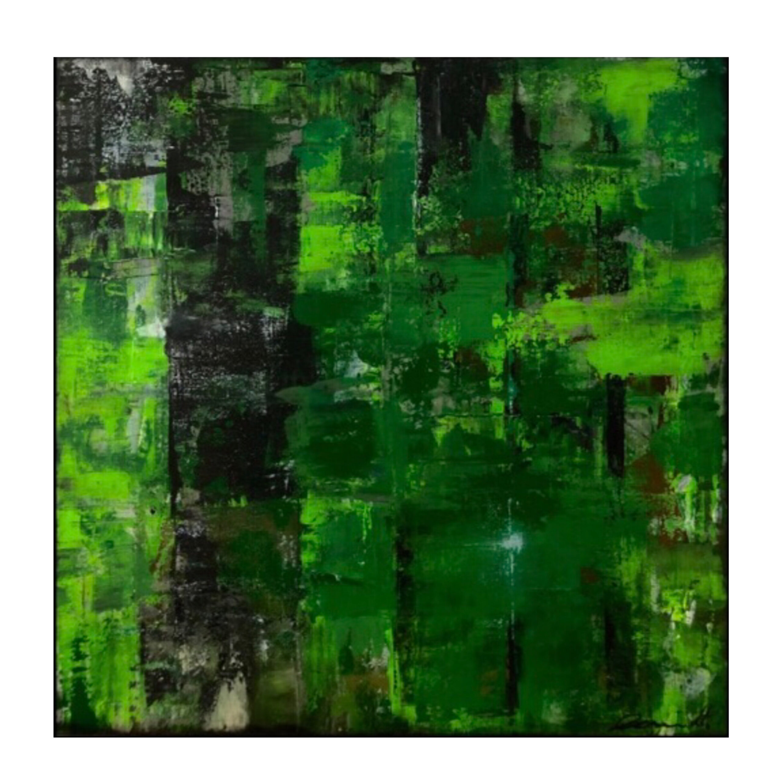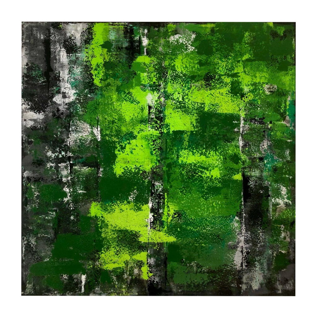 Meine Interpretation eines Waldes, bei dem helles Grün neben dunkleren Tönen seinesgleichen dominiert. Mit Schwarz und etwas Grau abgesetzt, gewinnt es an Kontrast und Lebendigkeit.