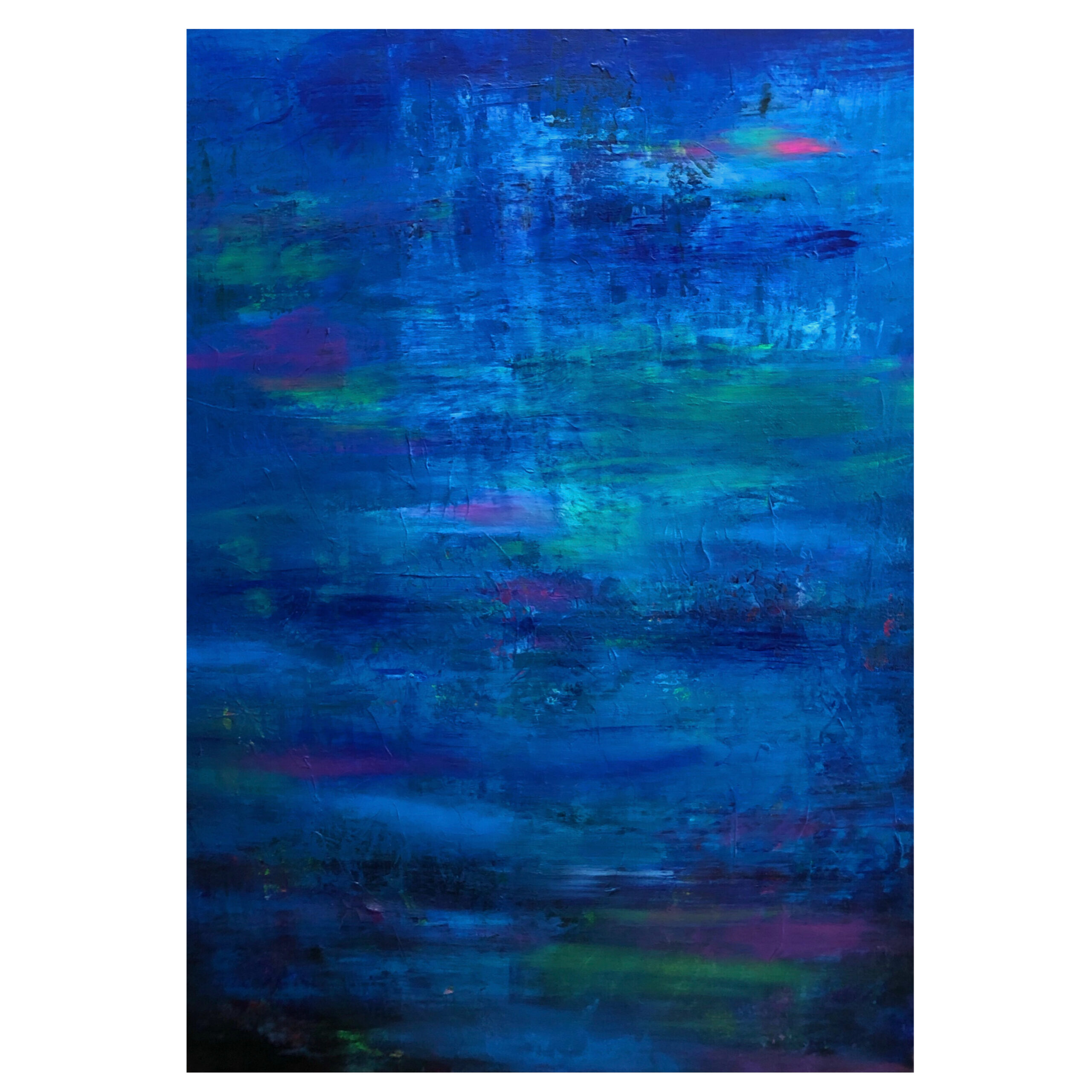 Der Himmel in seiner ganzen Vielfalt oder bist du Team Water? Inspiriert vom Wetterleuchten in Norwegen, verzieren hier verschiedenste Reflexe den Nachthimmel. Wenn Wasser dein Element ist, siehst du womöglich den Mond im stillen Gewässer schimmern, ganz und gar Seerosen auf einem Teich treibend? Was immer du siehst, dieses Bild zieht dich bei längerer Betrachtung in seinen Bann und lädt zum träumen ein.