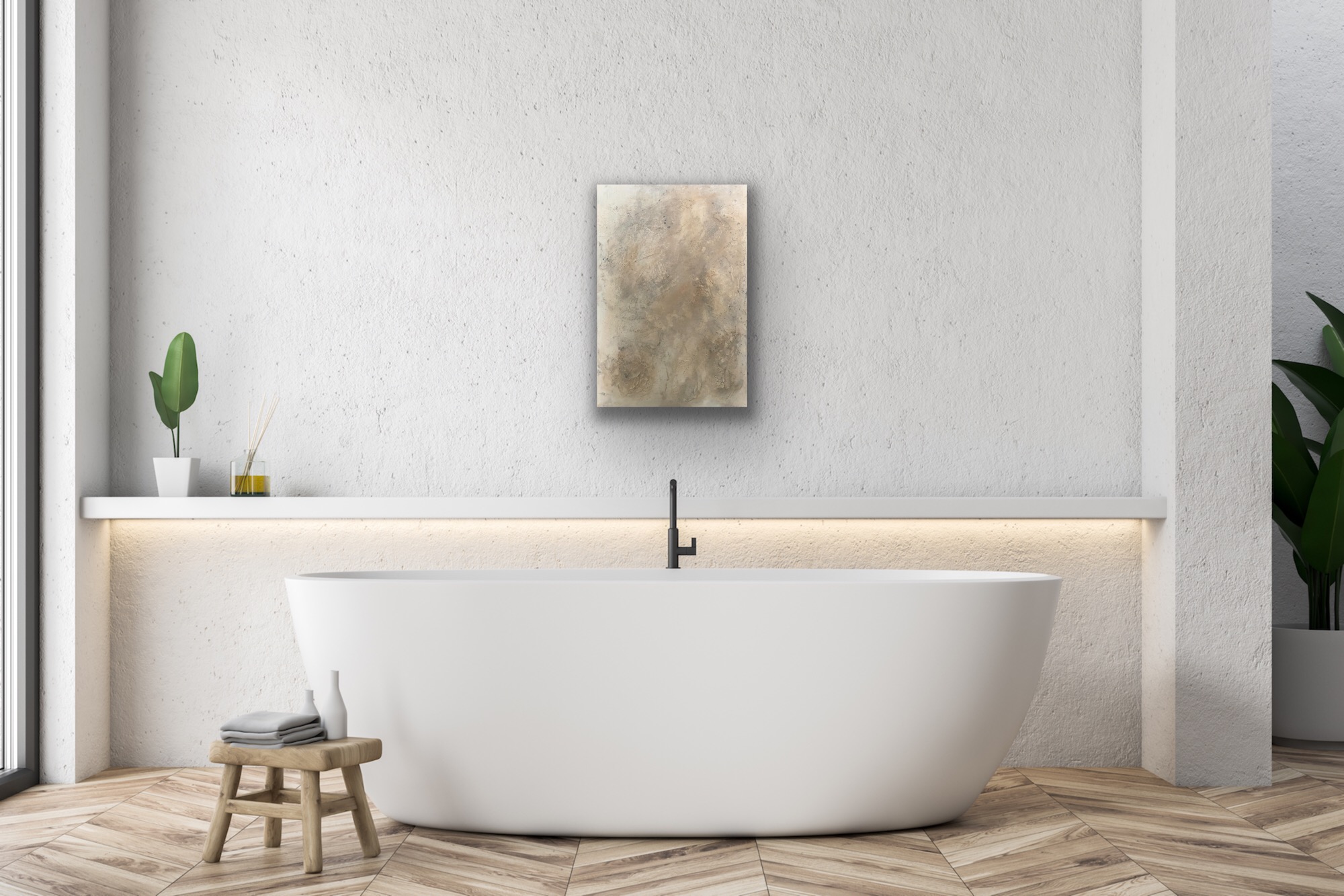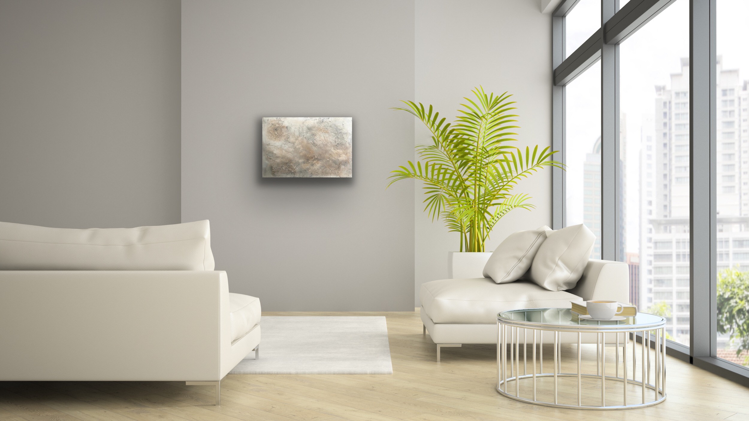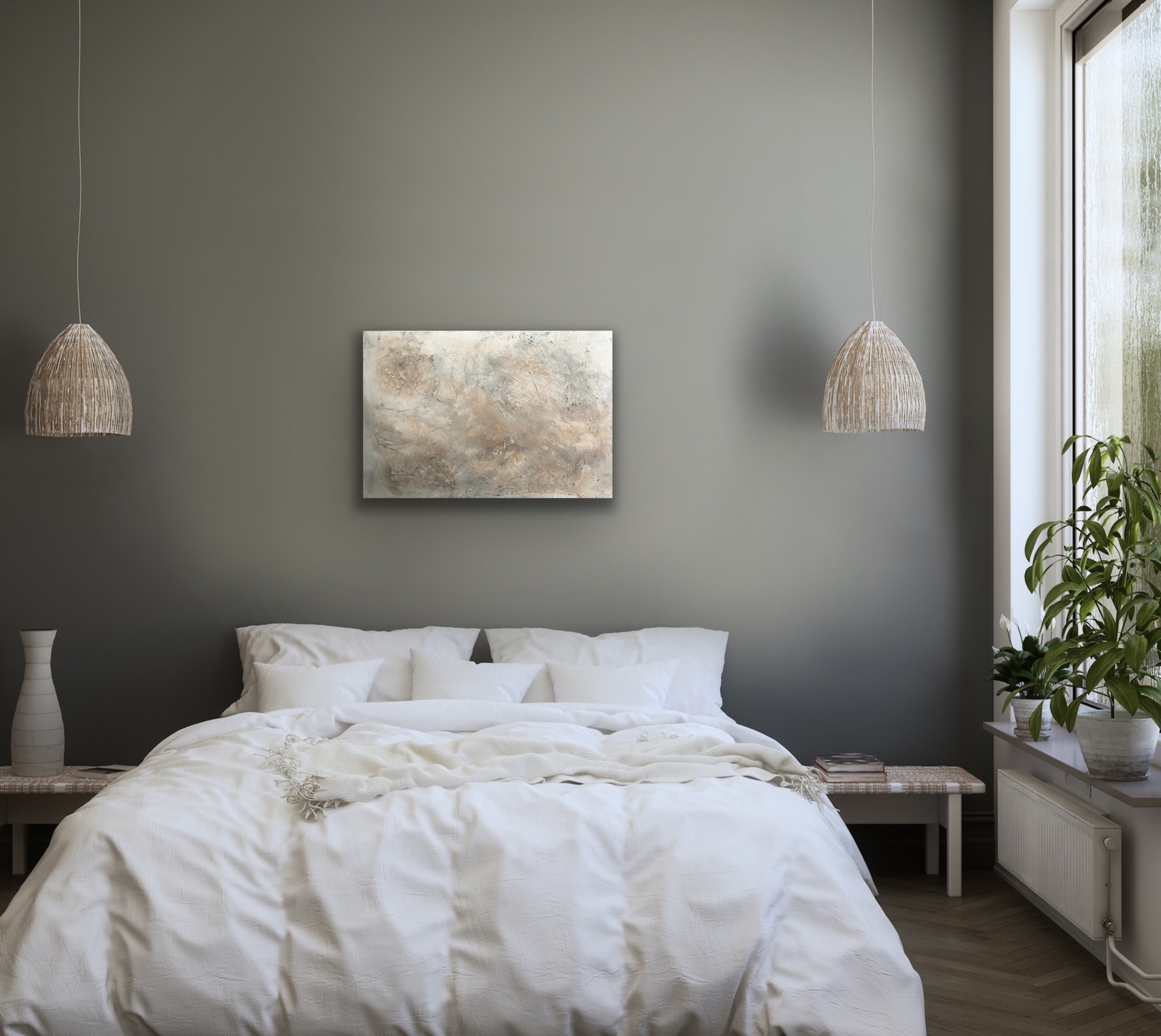 Die dezenten Beige und Grautöne strahlen Ruhe aus und bieten einen harmonischen Kontrast zu den rauen Strukturen.