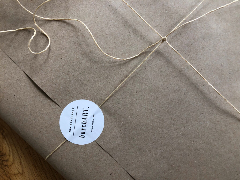 Um diesen zu reduzieren, versuche ich meine Bilder so plastikarm wie nur möglich und teilweise sogar plastikfrei zu verpacken. Zudem sind meine Kartons und Füllmaterialien recycelt. Ich bringe keine neuen Kartons in Umlauf und nutze ausschließlich bereits lizensiertes Material.